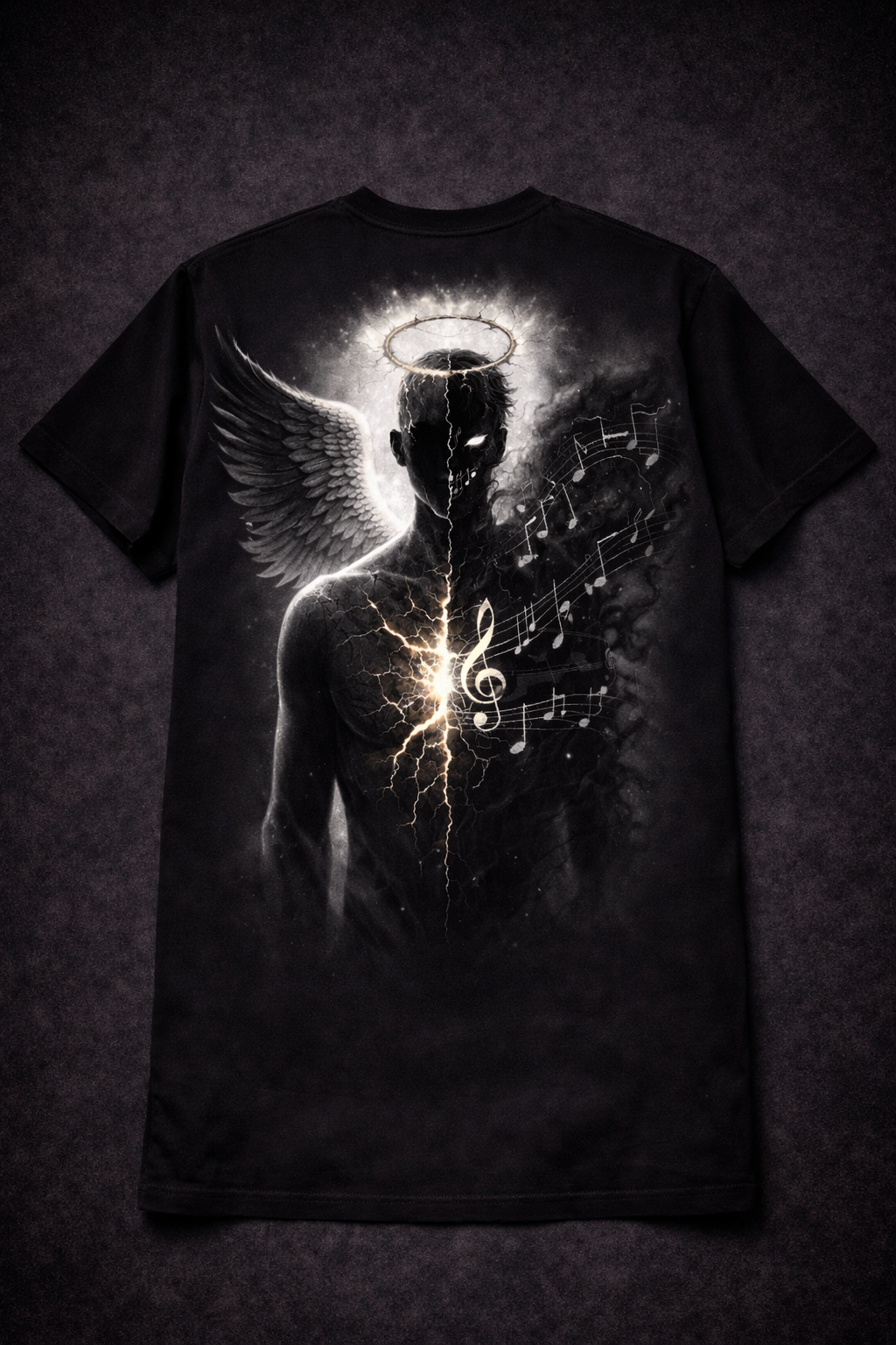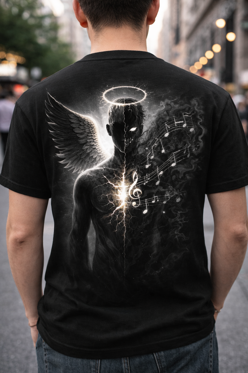 L’ange incarne la dualité — entre protection et chute.