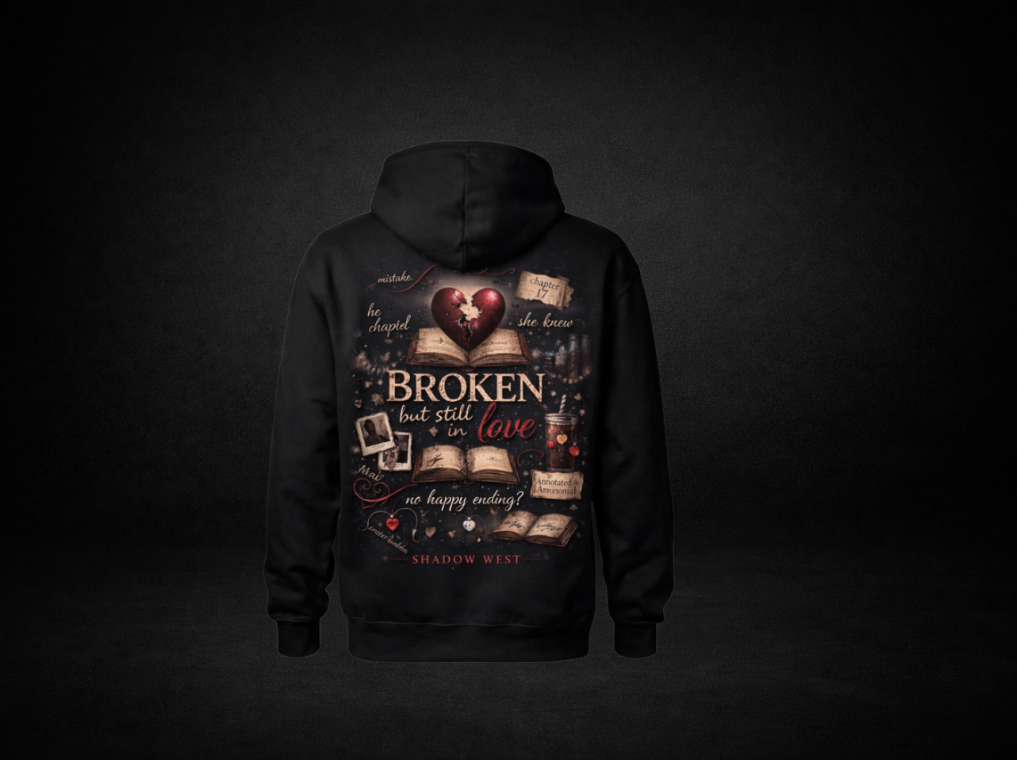 Un cœur brisé posé sur un livre ouvert, des fragments d’histoire et une ambiance sombre et intense… Ce sweat incarne les romances qui laissent une trace. Pour celles et ceux qui aiment les amours imparfaits, les chapitres douloureux et les fins qui ne sont pas toujours heureuses. Une pièce forte, mystérieuse et passionnée.